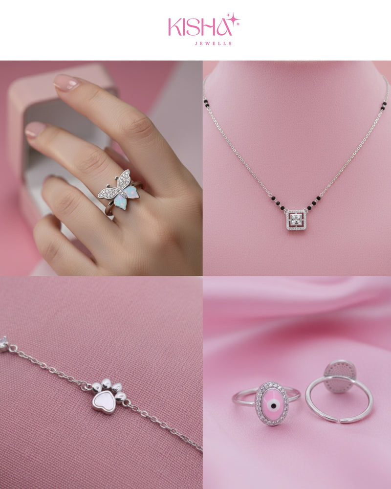 We use high - quality 925 silver to craft every kisha jewells, ensuring durability , shine, and a premium finish