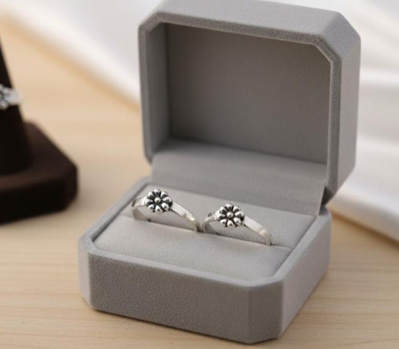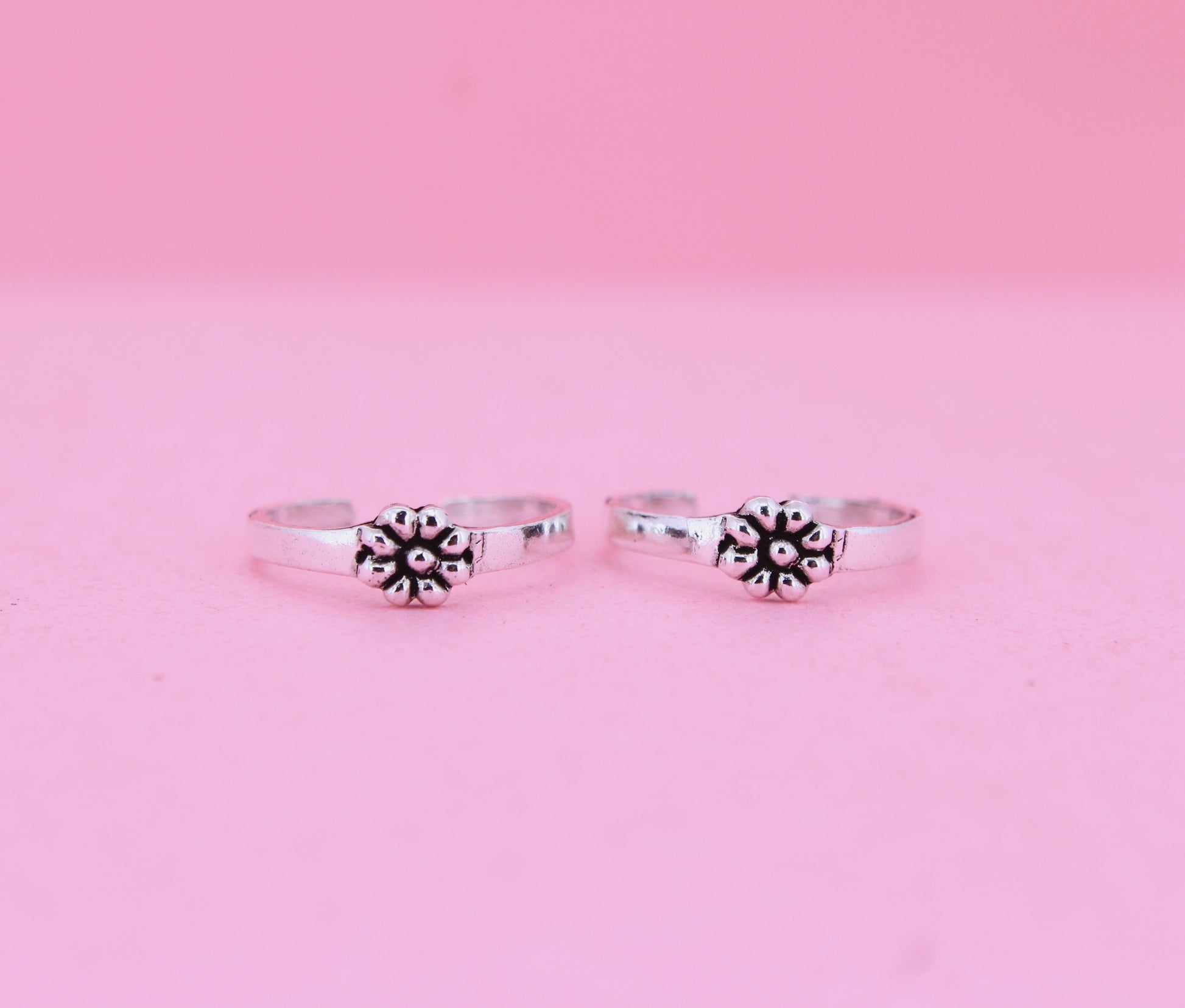 Oxidised floral toe rings